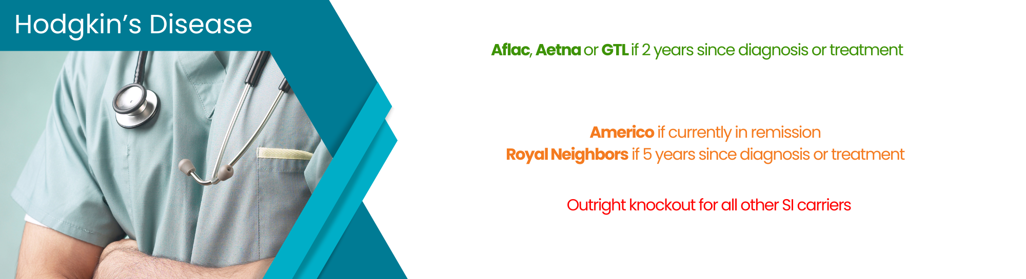 | Living Promise | Decline if PI was diagnosed with, treated for, or taken medications for in last 2 years |