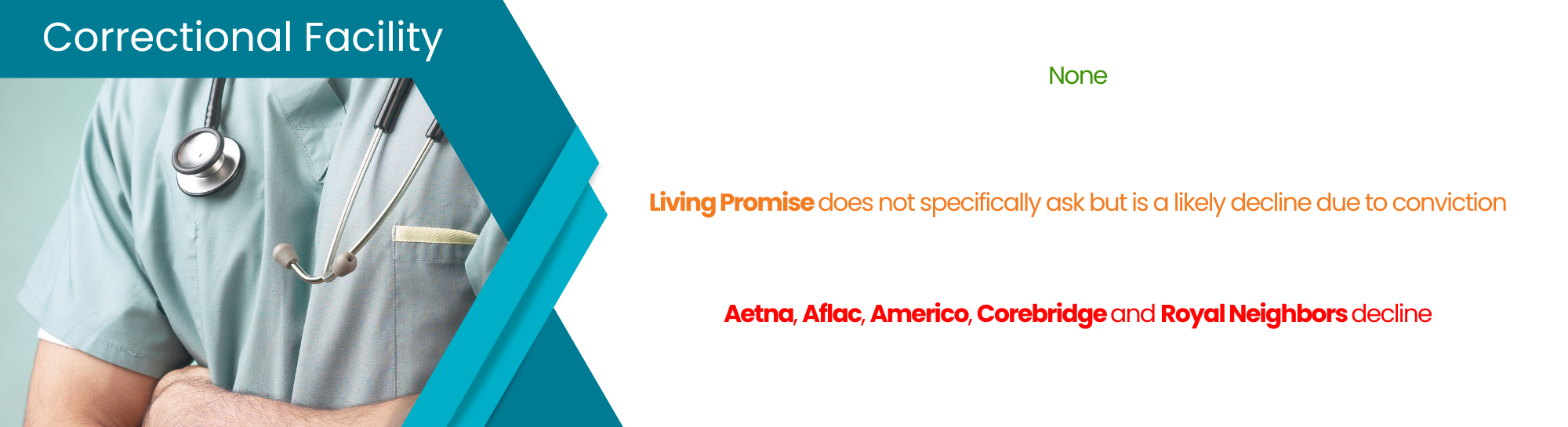 | TransAmerica | Decline if currently incarcerated, on probation or parole |