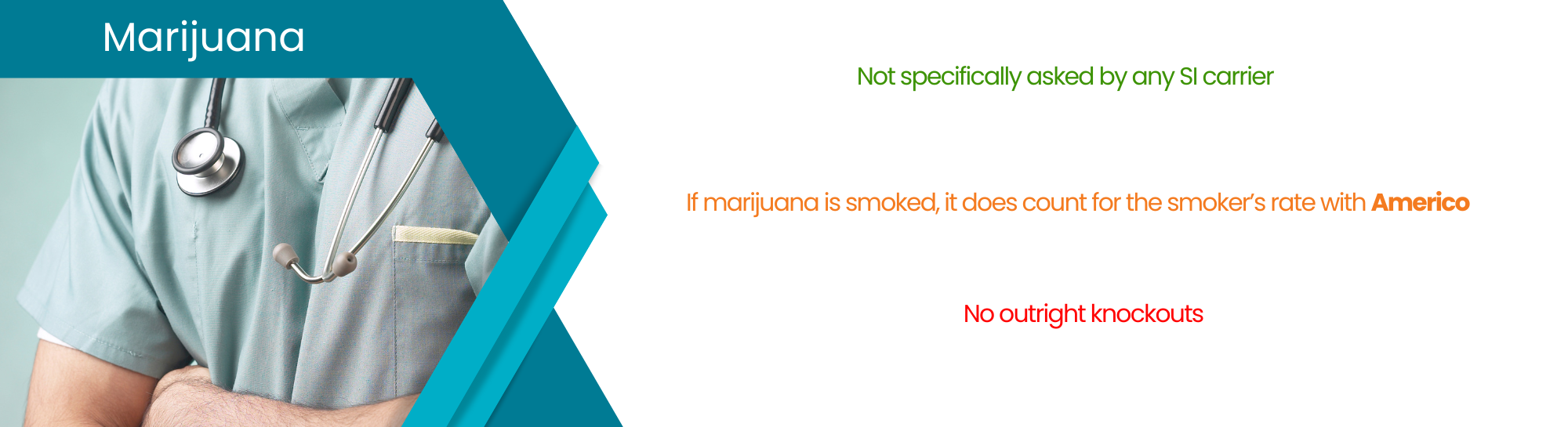 | Americo | PI will get smoker rates if currently smokes marijuana |