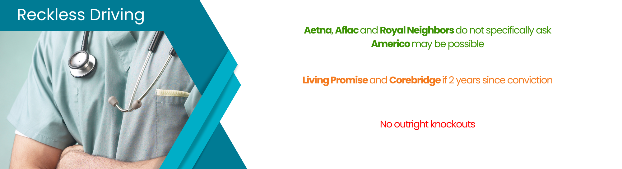| Living Promise | Decline if convicted of >1 reckless driving in the last 2 years |